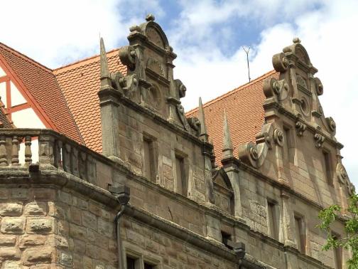 Kunstvoll wurden die beiden Renaissancegiebel aus heimischen Sandstein gefertigt.