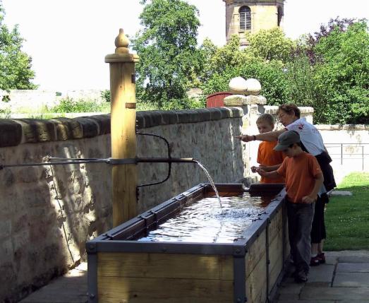 Der frühere Brunnen im Vorhof wurde wieder nachgebaut.