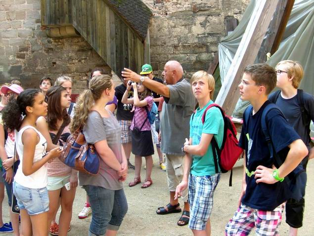 Beliebt sind auch die Burgführungen. Wie hier mit Helmut Krämer, der es versteht "Jung und Alt" dabei zu begeistern. Derzeit sind wegen Bauarbeiten keine Führungen möglich!!