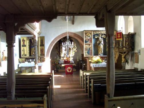 In den Sommermonaten kann man auch von der angebauten Taufkap-pelle aus einen Blick in das Innere der Kirche machen.