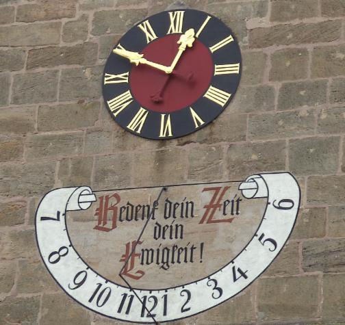 Die große Sonnenuhr am Kirchturm stammt aus der Zeit als es noch keine mechanische Uhren gab.