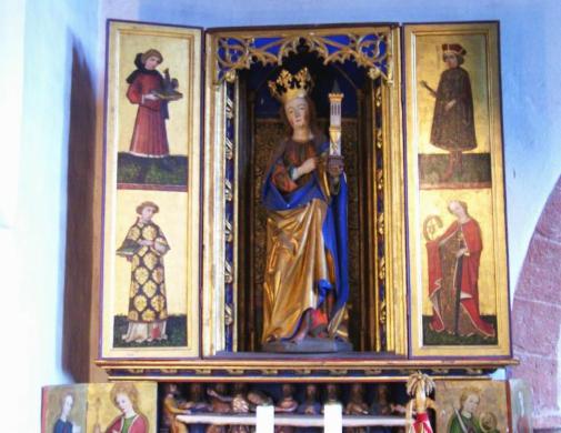 Das "Veitsaltärchen", die Figur des hl. Veit wurde von einem unbekannten Künstler im späten 15. Jh. angefertigt. Es zeigt ihn mit einem Buch und dem Hahn, als Zeichen der Wachsamkeit und Stärke.