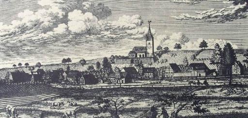 Auf dem Kupferstich von Johann Melchior Roth, aus dem Jahre 1743 ist das Gotteshaus noch als Wehrkirche, umgeben von einer wuchtigen Mauer und den vier Scharwachtürmen am Dachansatz des Turmes, zu sehen.